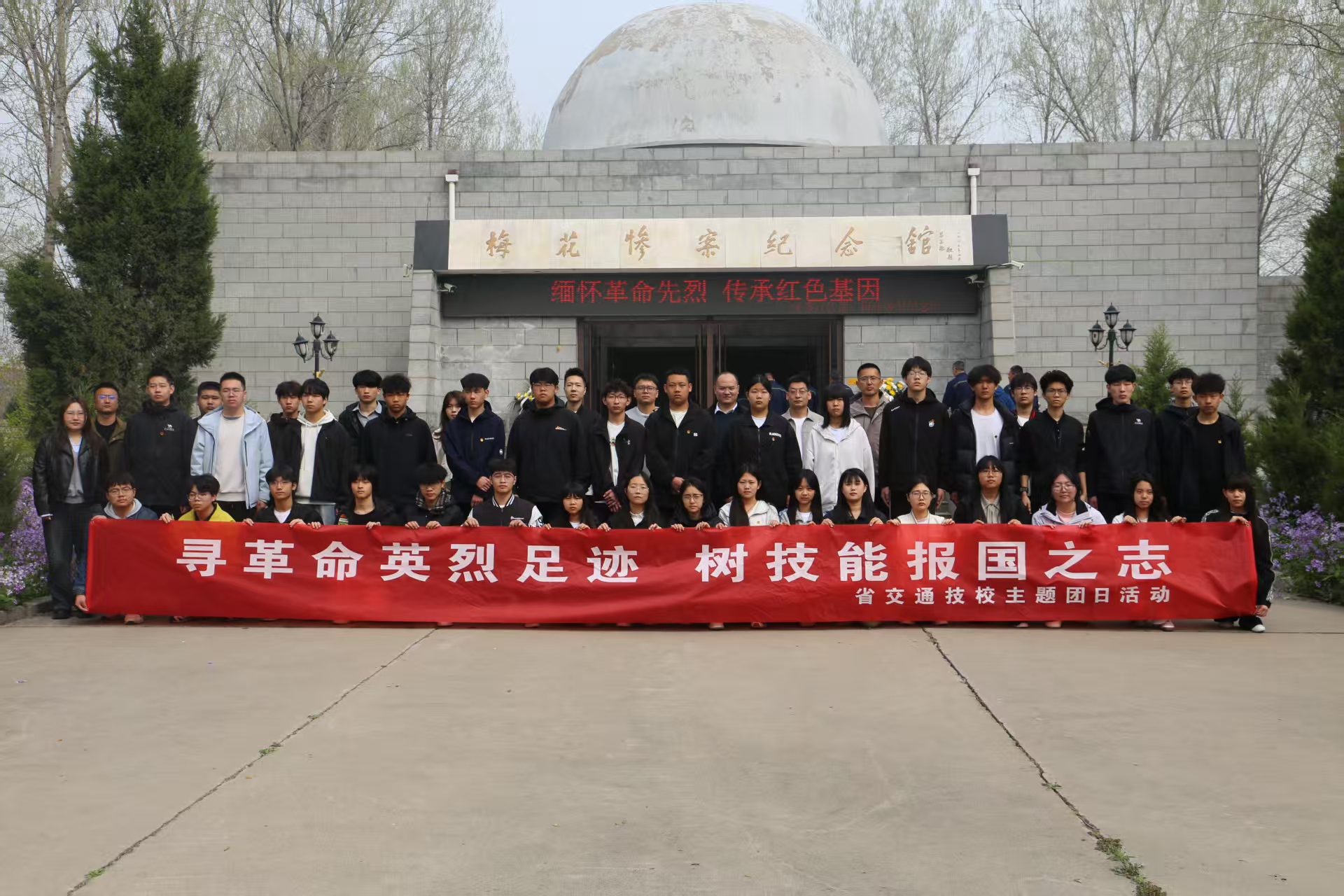 青山埋忠骨,史册载功勋。清明节前夕,为深切缅怀革命先烈,弘扬爱国主义精神,激励青年学子铭记历史、奋发图强,我校组织团员代表、优秀学生代表前往梅花惨案纪念馆,开展“寻革命英烈足迹 树技能报国之志”主题团日活动。